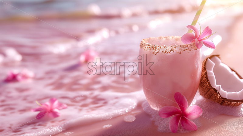 Green mojito cocktail with lemon slice on a table by the blue green sea video