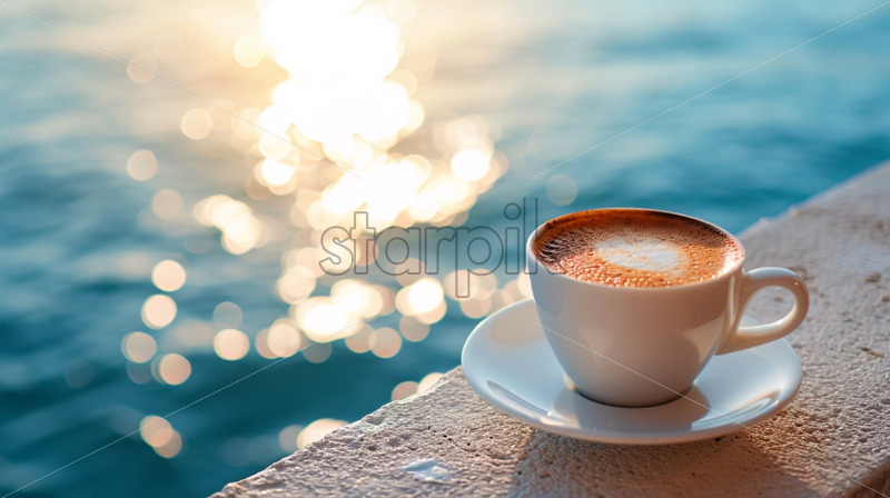 Home » Shop » Uncategorised » Coffee cup on a sea view background, romantic atmosphere