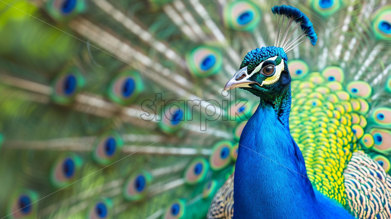 Colorful and regal peacock, displaying its vibrant plumage in a spectacular jungle courtship dance