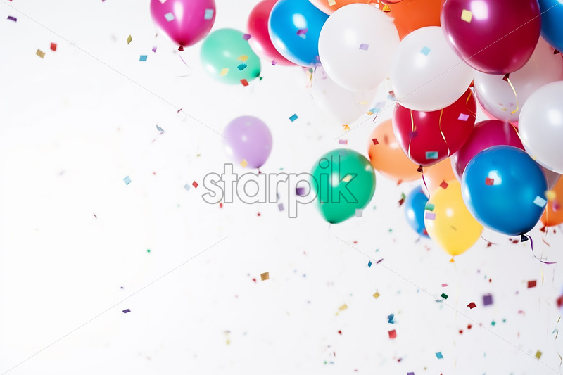 Colorful birthday balloons and confetti