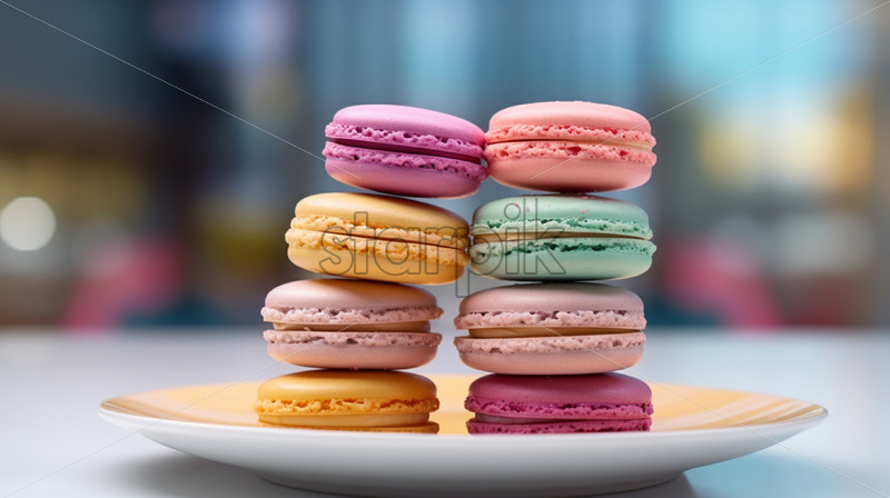Colorful Macarons dessert on a plate