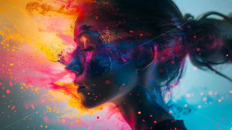 Home » Shop » AI Illustration » Colourful splash in a woman head, vibrant explosion