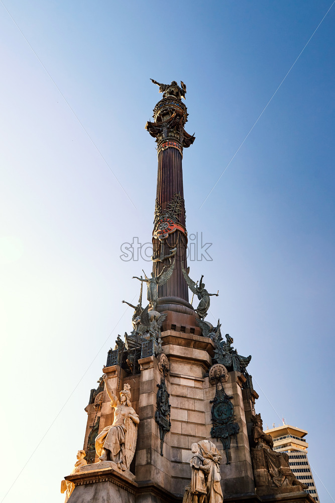 Columbus Monument at sunset. Clear sky on background, Barcelona, Spain Royalty Free Stock photo