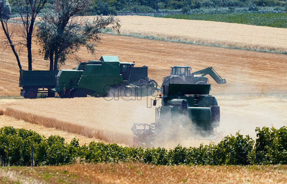 Combine harvesters working in the field in autumn season. Austria Royalty Free Stock photo