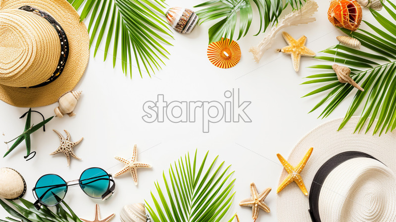 Composition with travel accessories on white background