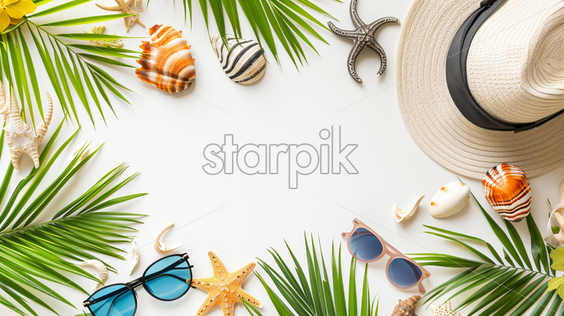 Composition with travel accessories on white background