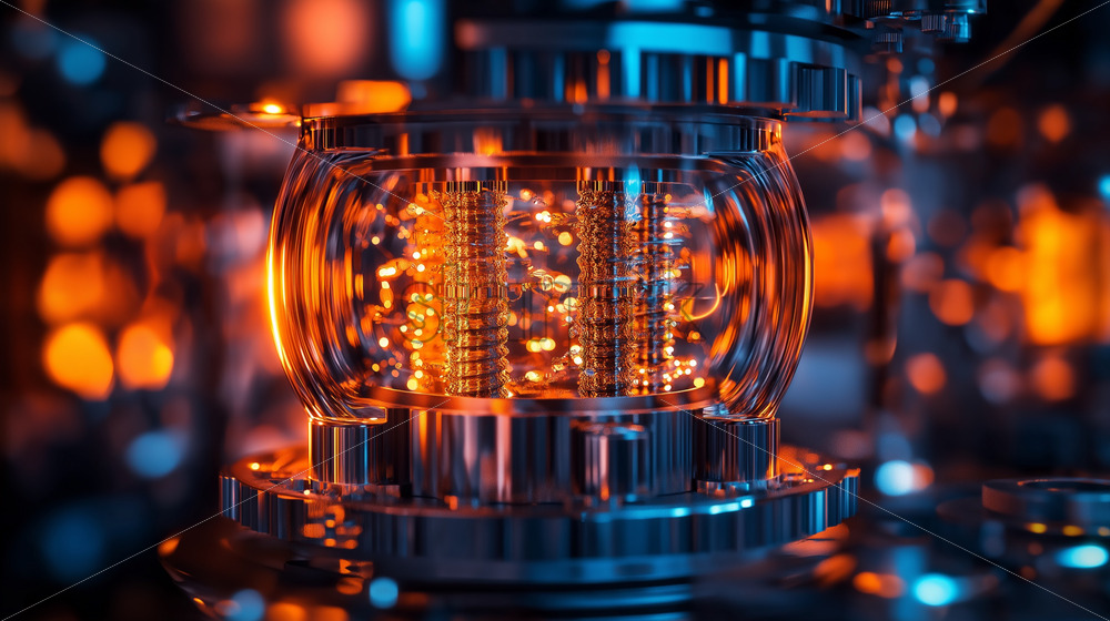 concept art of the inside of a quantum computer, showing intricate qubit connections