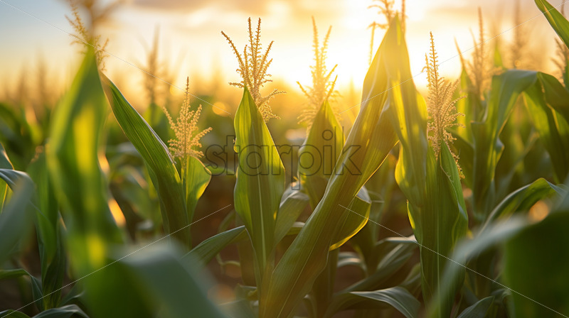 Corn field background sunset