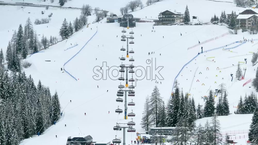 Corvara in Badia, Italy – January 11, 2025: Aerial drone view of a ski lift in Corvara, in South Tyrol, the Dolomites Royalty Free Stock Video Footage