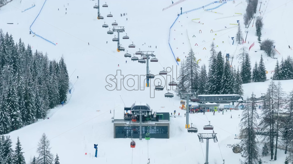 Corvara in Badia, Italy – January 11, 2025: Aerial drone view of a ski lift in Corvara, in South Tyrol, the Dolomites Royalty Free Stock Video Footage