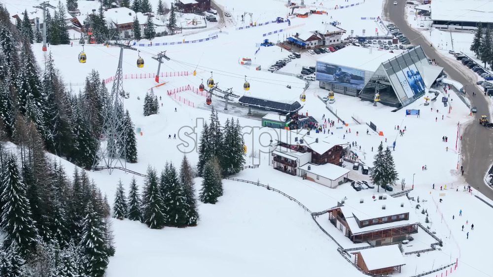 Corvara in Badia, Italy – January 11, 2025: Aerial drone view of a ski lift in Corvara, in South Tyrol, the Dolomites Royalty Free Stock Video Footage