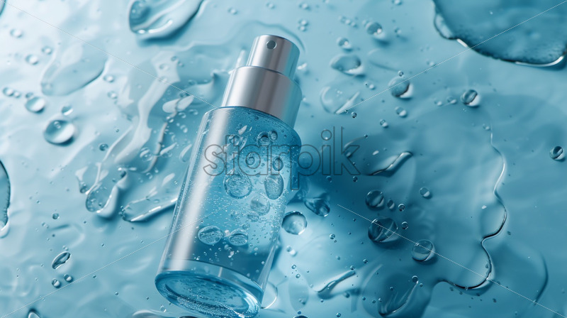 Cosmetics bottle serum mock up, package design product, water splash minimalistic background