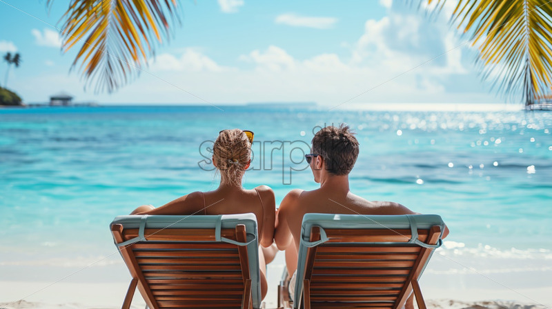Couple enjoying vacation together at the island with sea views, travel destinations banner