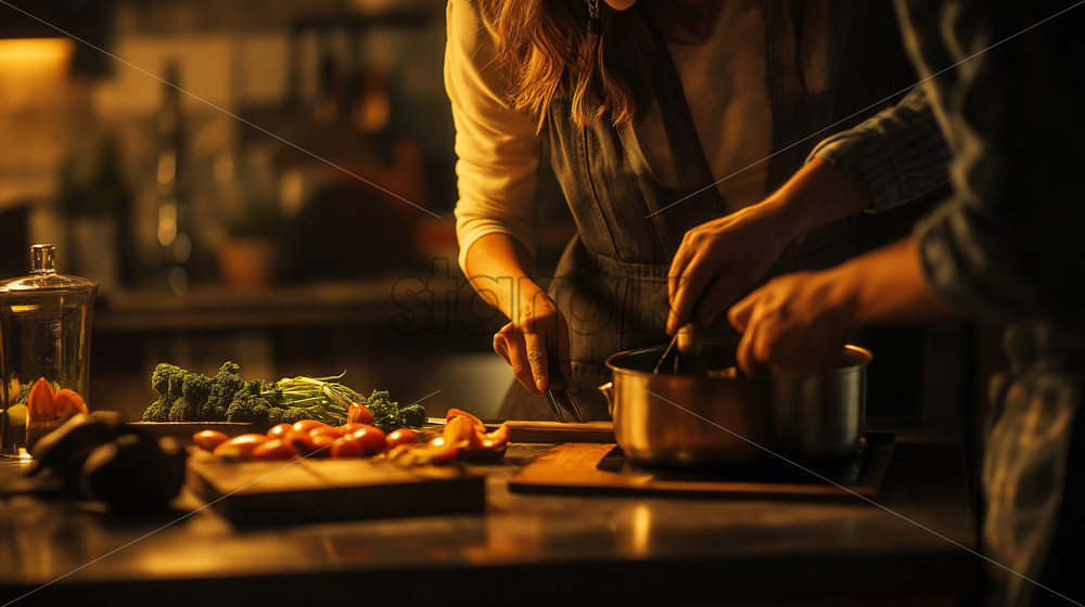couple making dinner together