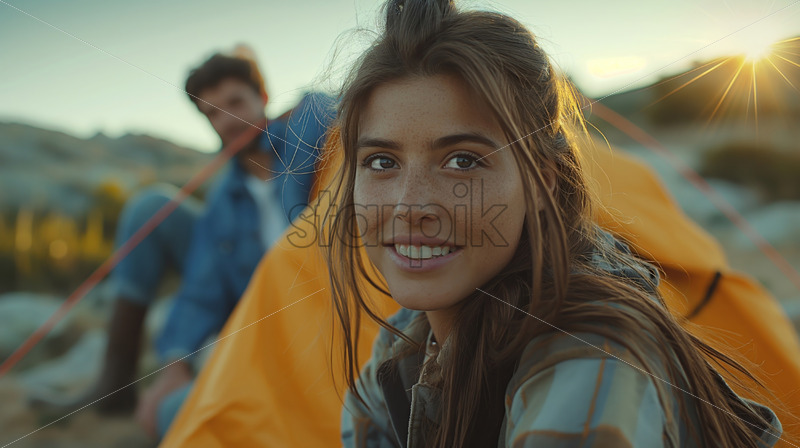 Home » Shop » AI Illustration » Couple traveling in a camp exploring together