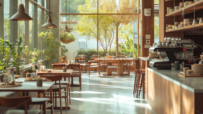 Cozy modern cafe loft style, contemporary design neutral colours