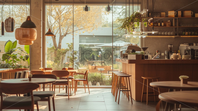 Vintage Cafe architecture in the city in a sahdes gray wall and wooden chair with classic theme