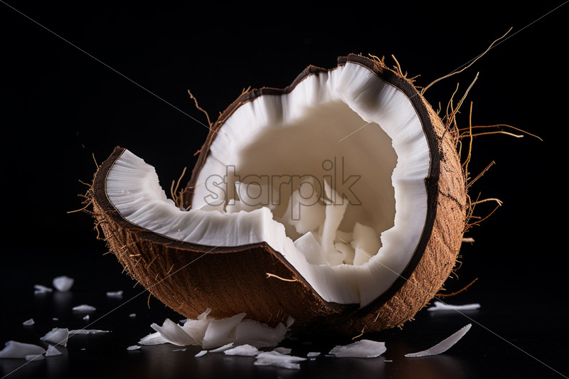 Coconut fruit on a table with sea view, colored straws and umbrellas, palm trees, protaras, cyprus island