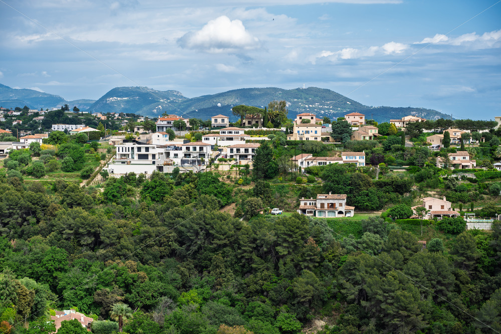 VIDEO Aerial, drone view of buildings on the shore of the Adriatic sea, with mountains on the background in Montenegro Royalty Free Stock Video Footage
