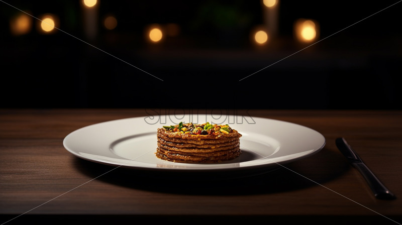 Close up of a woman’s hand cutting into a gourmet meat dish served with sauce, greens, and rosemary garnish on a white plate Royalty Free Stock Video Footage