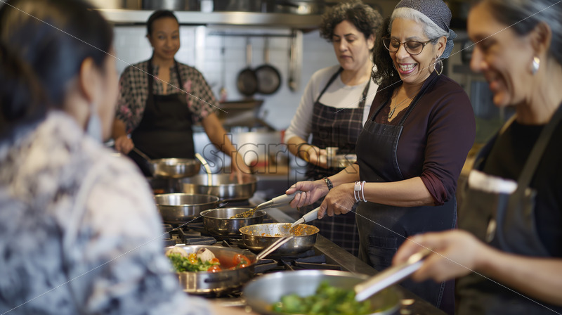 Participants engage in a culinary workshop, learning cooking techniques and recipes from a local chef or culinary instructor in a hands-on cooking environment.
