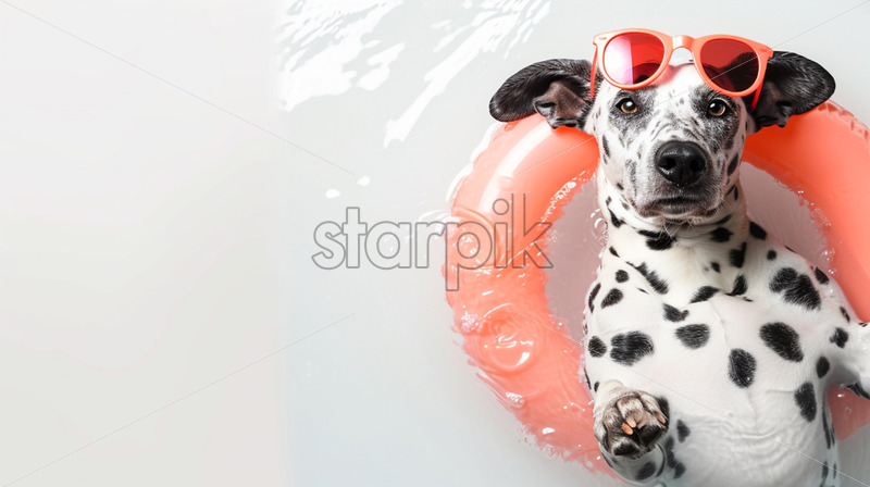 Man wearing sunglasses speaks into a small microphone under large white beach umbrellas with palm trees in the background Royalty Free Stock Video Footage