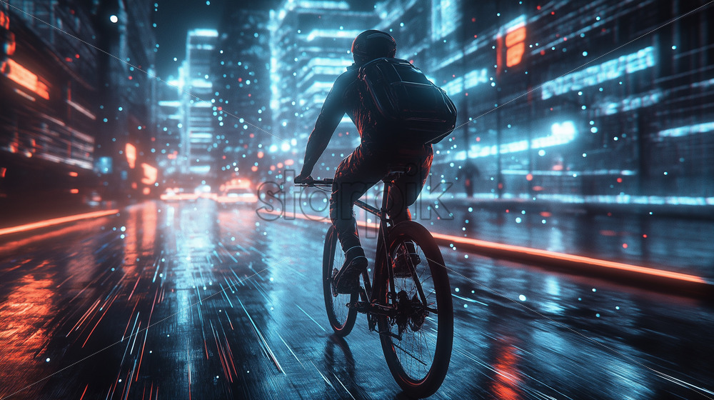 cyclist on an eco-friendly bike equipped with energy-harvesting technology