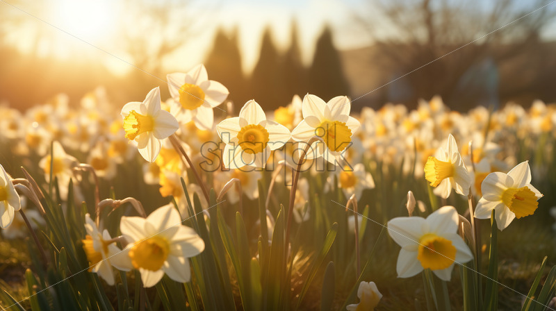 Generative AI a mountain landscape with a plain full of multicolored flowers and different species