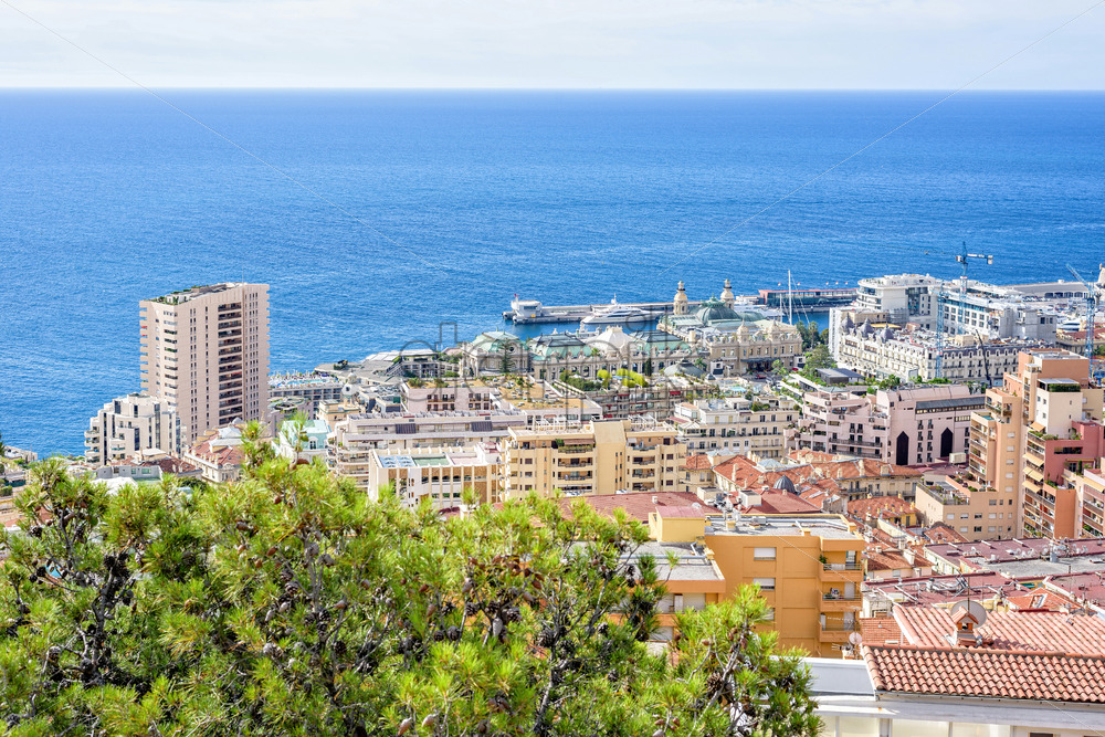 Home » Shop » city » Daylight sunny view to yacht parked in port, luxury buildings and modern houses. Construction cranes working. Bright blue clear sky. Negative copy space, place for text. Monte Carlo, Monaco