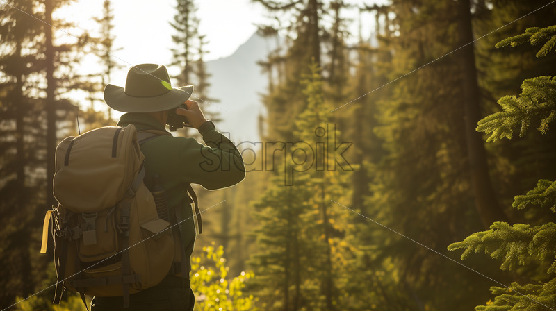 A dedicated forest ranger in Banff National Park, Alberta, Canada, patrolling the pristine wilderness.
