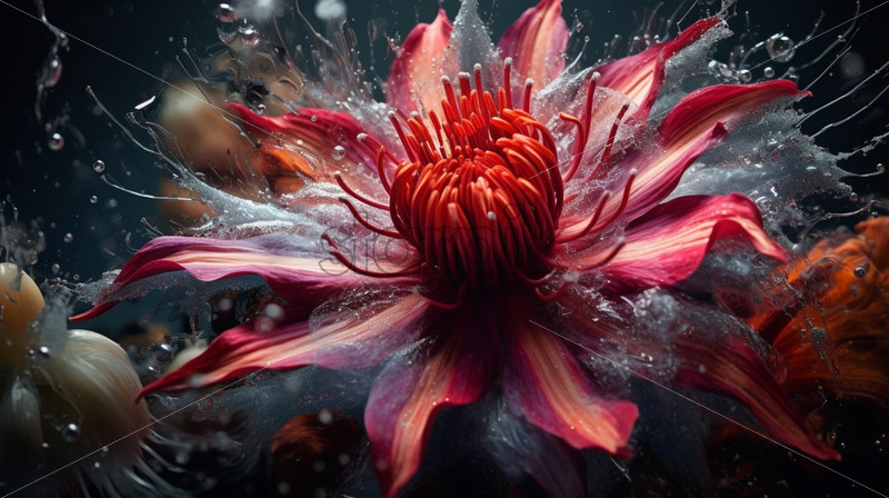 A red flower on a white background, motion blur