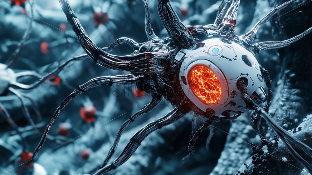 Home » Shop » AI Illustration » detailed nano-robot with quantum technology, navigating through human blood vessels
