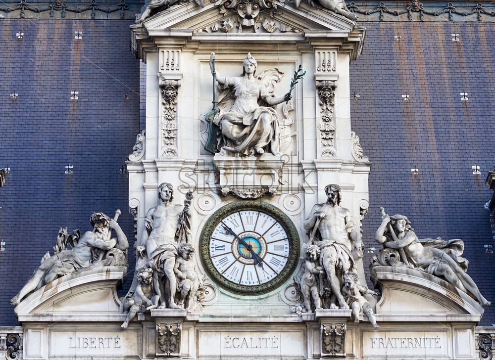 Details of the clock of the Hotel de Ville or Council building. Paris, France Royalty Free Stock photo