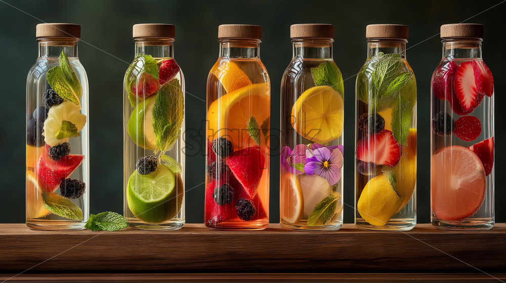 detox drinks infused with fresh herbs, citrus slices, and cucumber