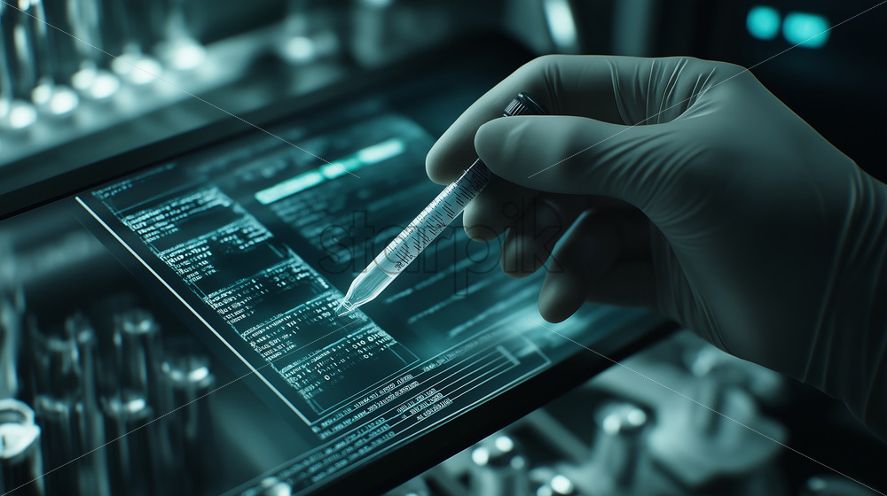 a futuristic laboratory creating medicines