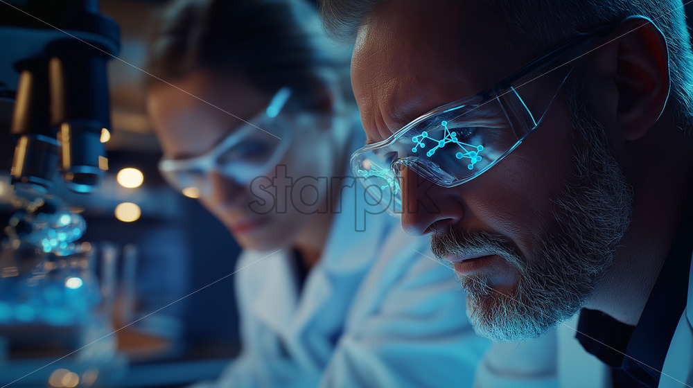 Doctors using quantum AI to make medicines, visualized as molecular structures