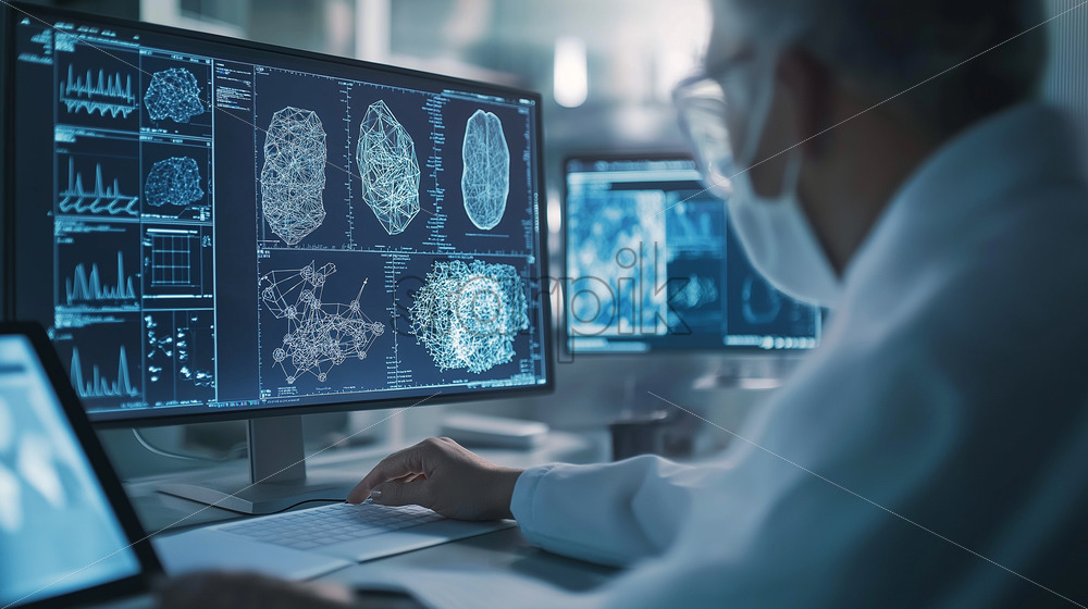 Doctors using quantum AI to make medicines, visualized as molecular structures
