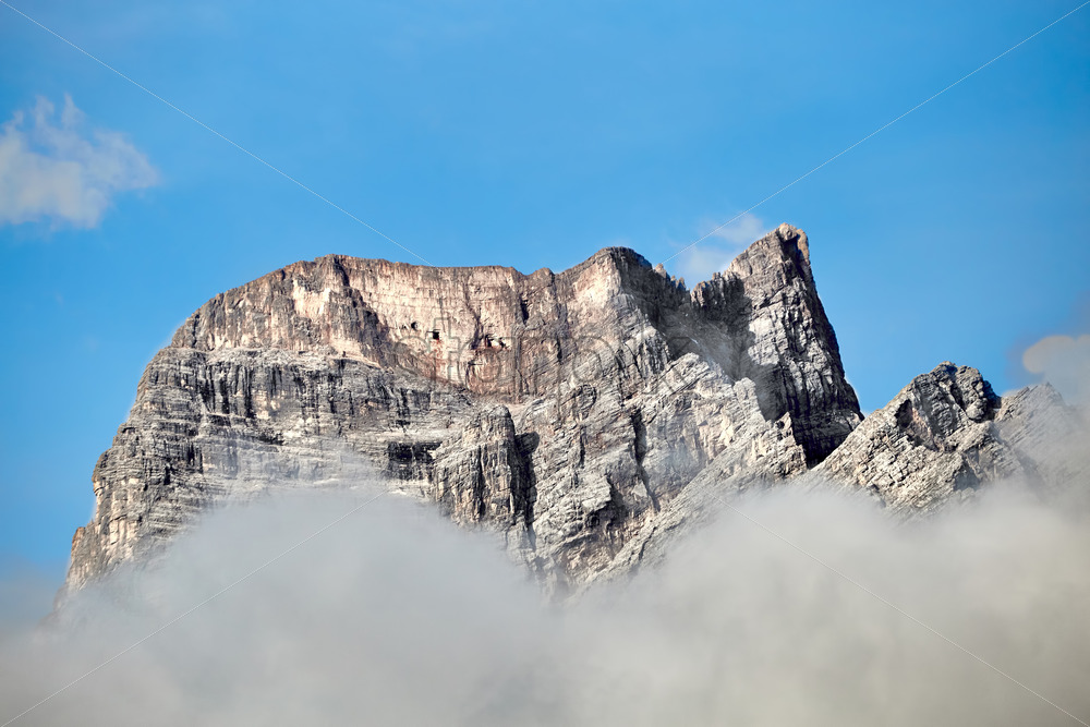 Sexten Dolomites mountains near Tre Cime di Lavaredo. Cloudy ski on background. Italy beauties