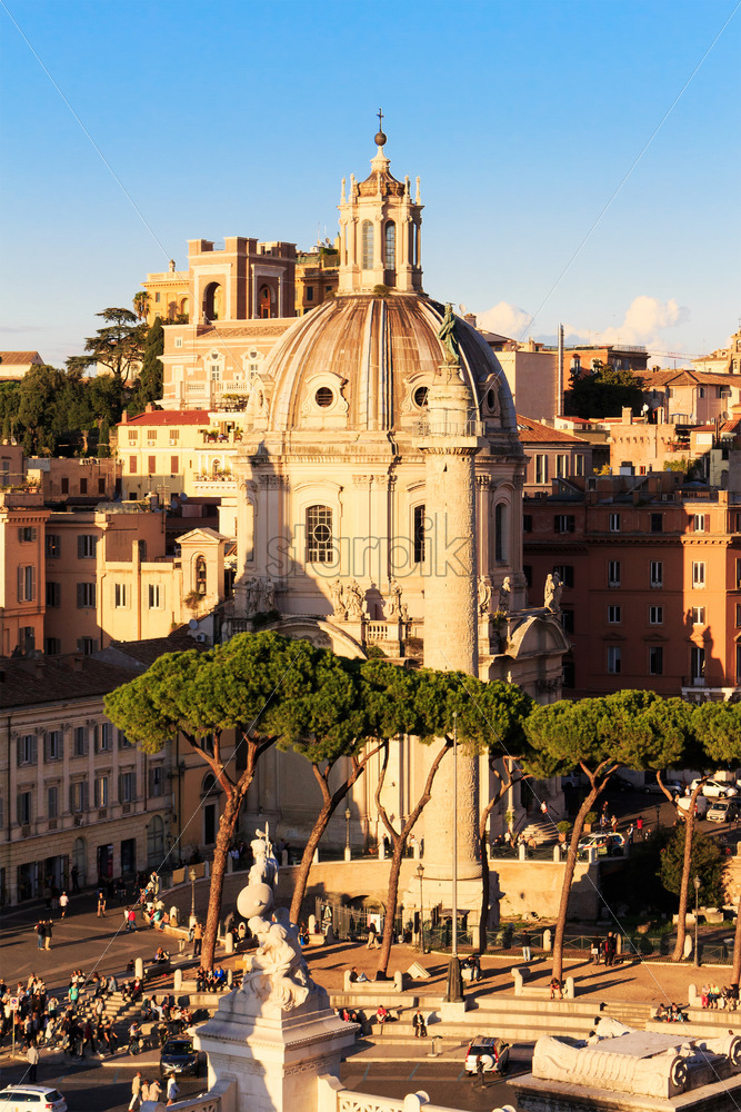 Home » Shop » buildings » Domus church in Roma, Italy, at sunset with blue sky