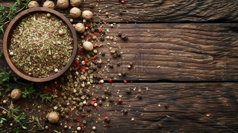Whole black cardamom pods and white sesame seeds on a wood surface