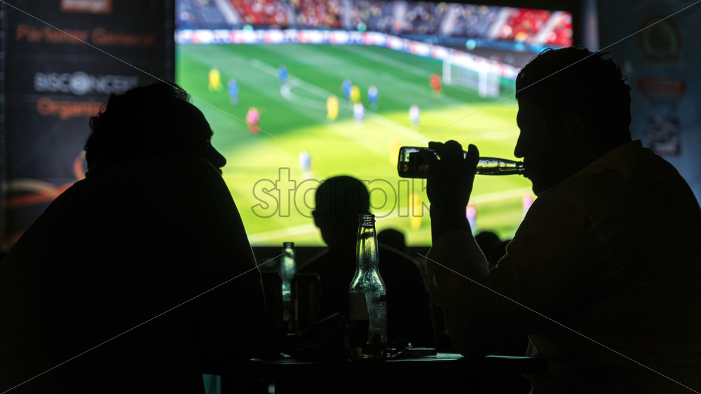 Drinking lemonade cocktail glasses with straw and ice shaking, man and woman friend hands cheers at an event with blurred red hair people and colored wall background