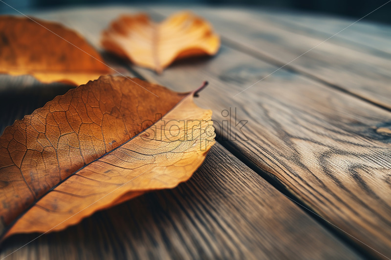 Leaves on a wooden background