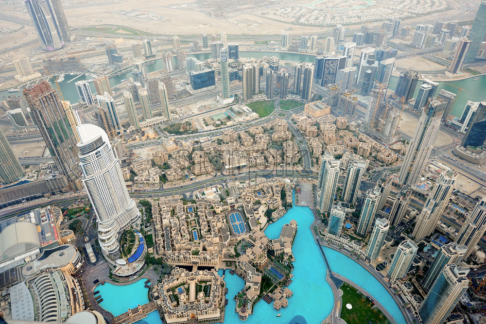 Dubai Cityscape at sunset from tallest building view. United Arab Emirates Royalty Free Stock photo