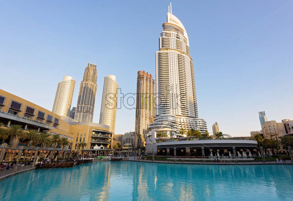 Aerial time lapse shot of moving traffic at night in the center of the city, UNITED ARAB EMIRATES, Download royalty free stock video footage cinematic Royalty Free Stock Video Footage