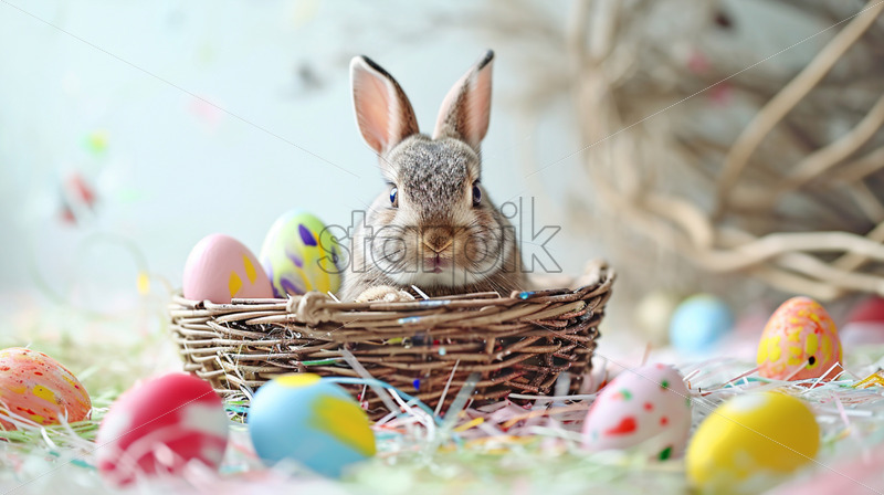 Fluffy duckling sitting in an Easter basket