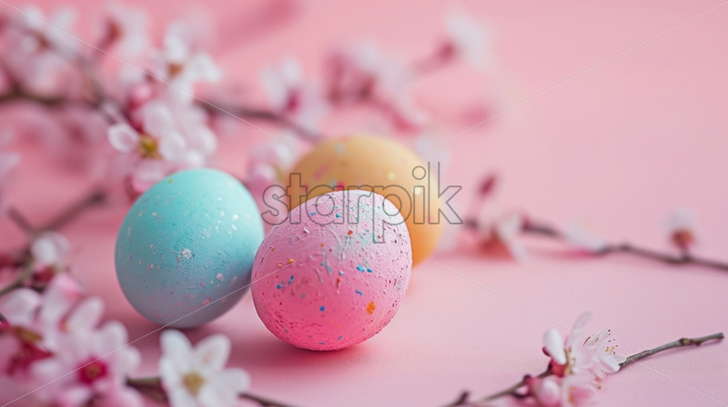 Home » Shop » Uncategorised » Easter postcard with painted pastel eggs on a pink background