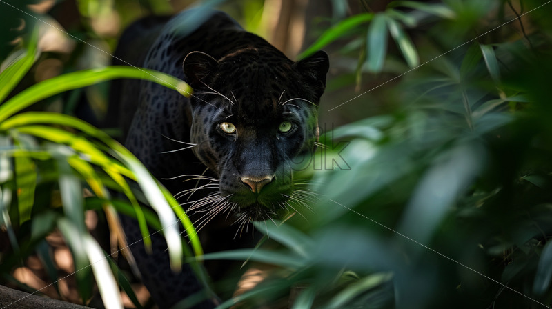 Elegant and agile panther prowling through the dense underbrush with stealth and grac