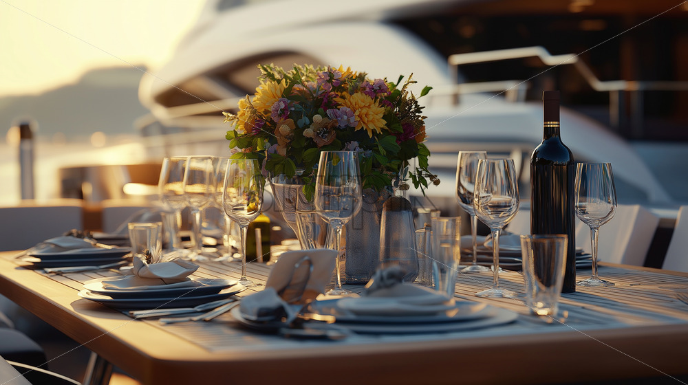 Refined restaurant table setting with crystal glasses, plates, and gourmet dishes in the background Royalty Free Stock Video Footage