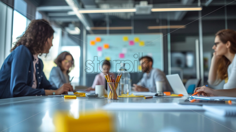 Home » Shop » Uncategorised » Employees collaborating at a conference table, brainstorming ideas on a whiteboard