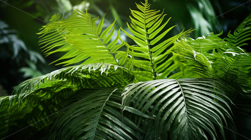 Enormous tropical fern unfolding its delicate fronds in a hidden corner of the jungle
